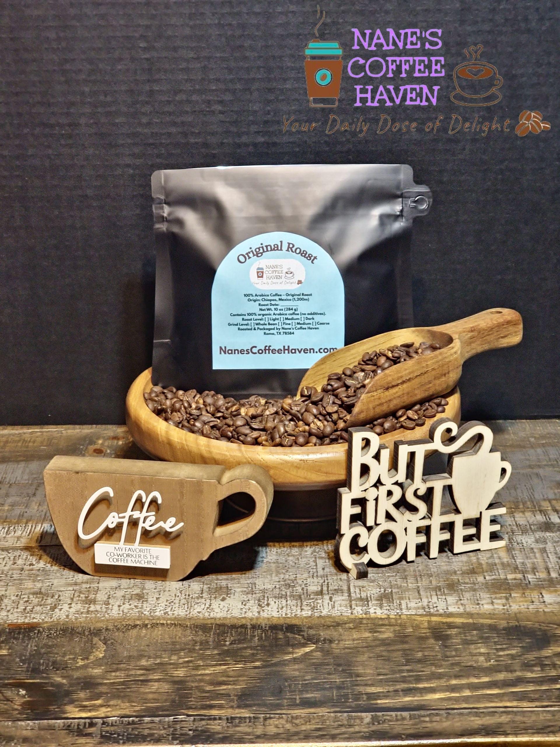 Welcome to Nane’s Coffee Haven — Your Daily Dose of Delight. We specialize in gourmet Arabica coffee beans, roasted fresh to order in small batches to ensure the perfect medium roast — the ideal balance of flavor, aroma, and smoothness. Our beans are handpicked from the lush highlands of Chiapas, Mexico, grown at 1,200 meters above sea level for a naturally rich and vibrant taste. At Nane’s, every cup is crafted with care, delivering the authentic essence of mountain-grown coffee in every sip.