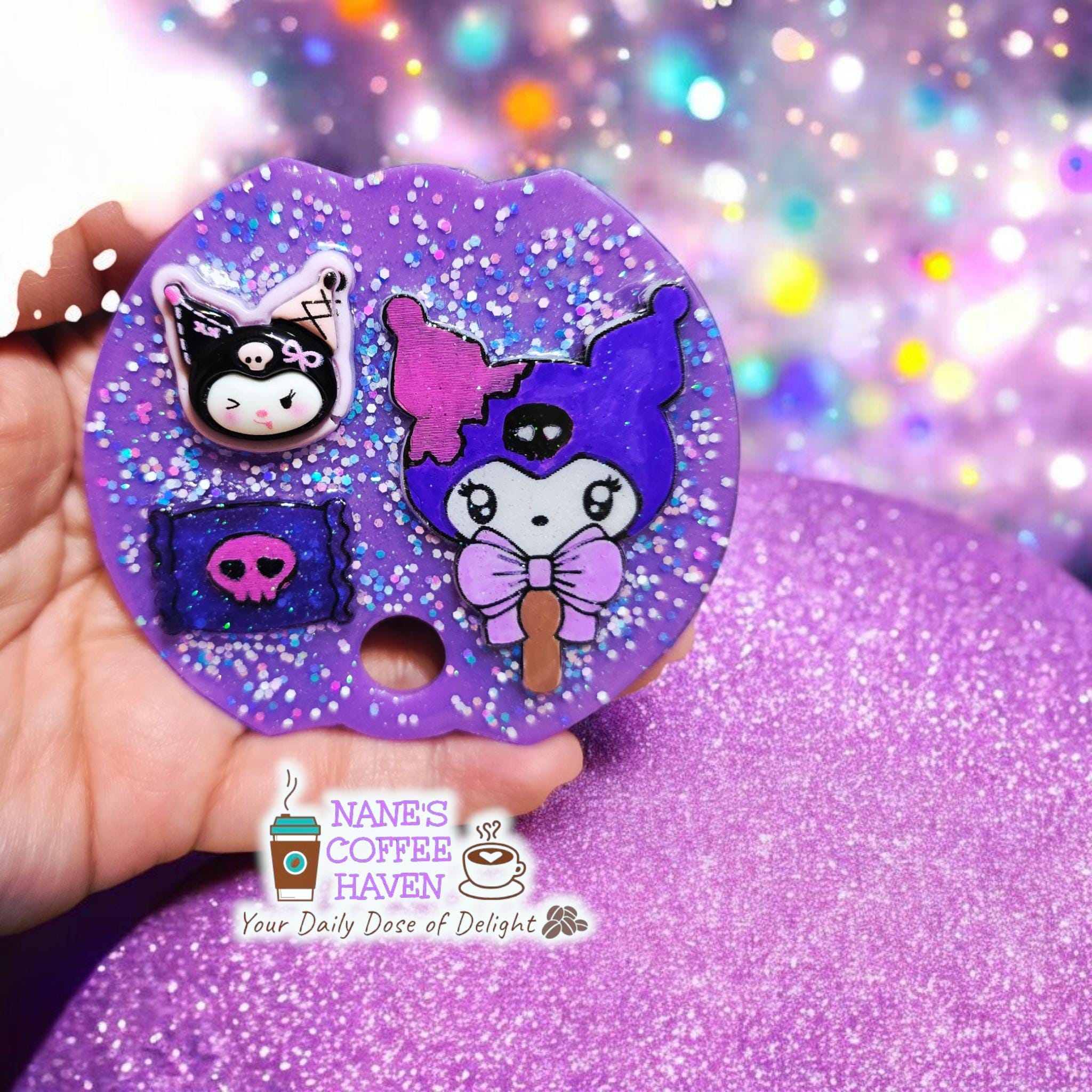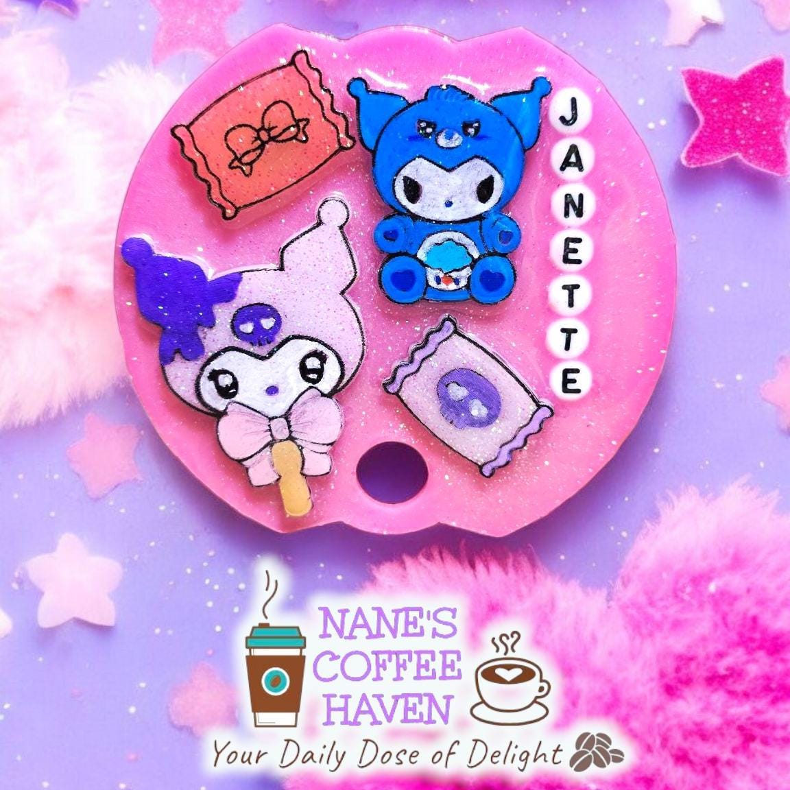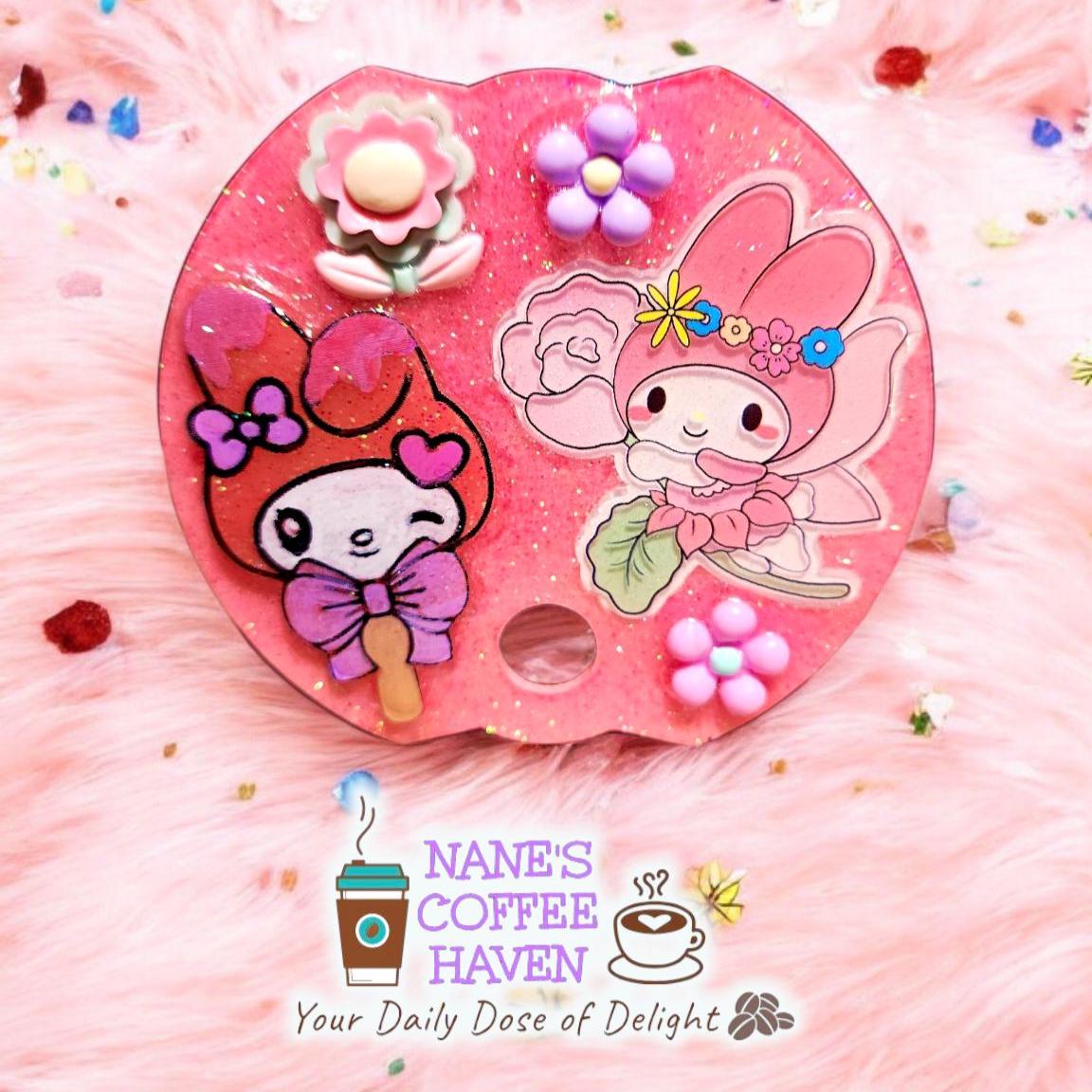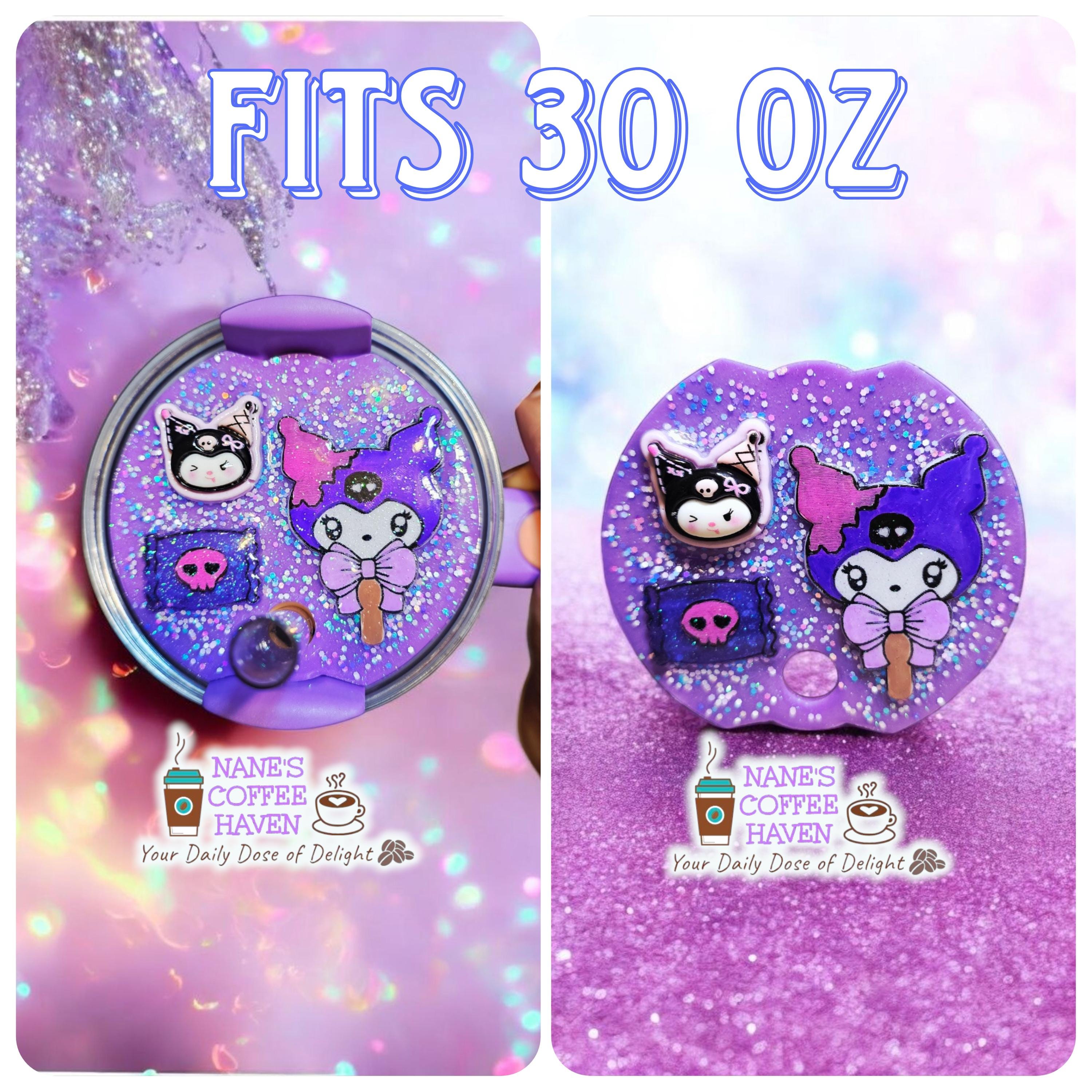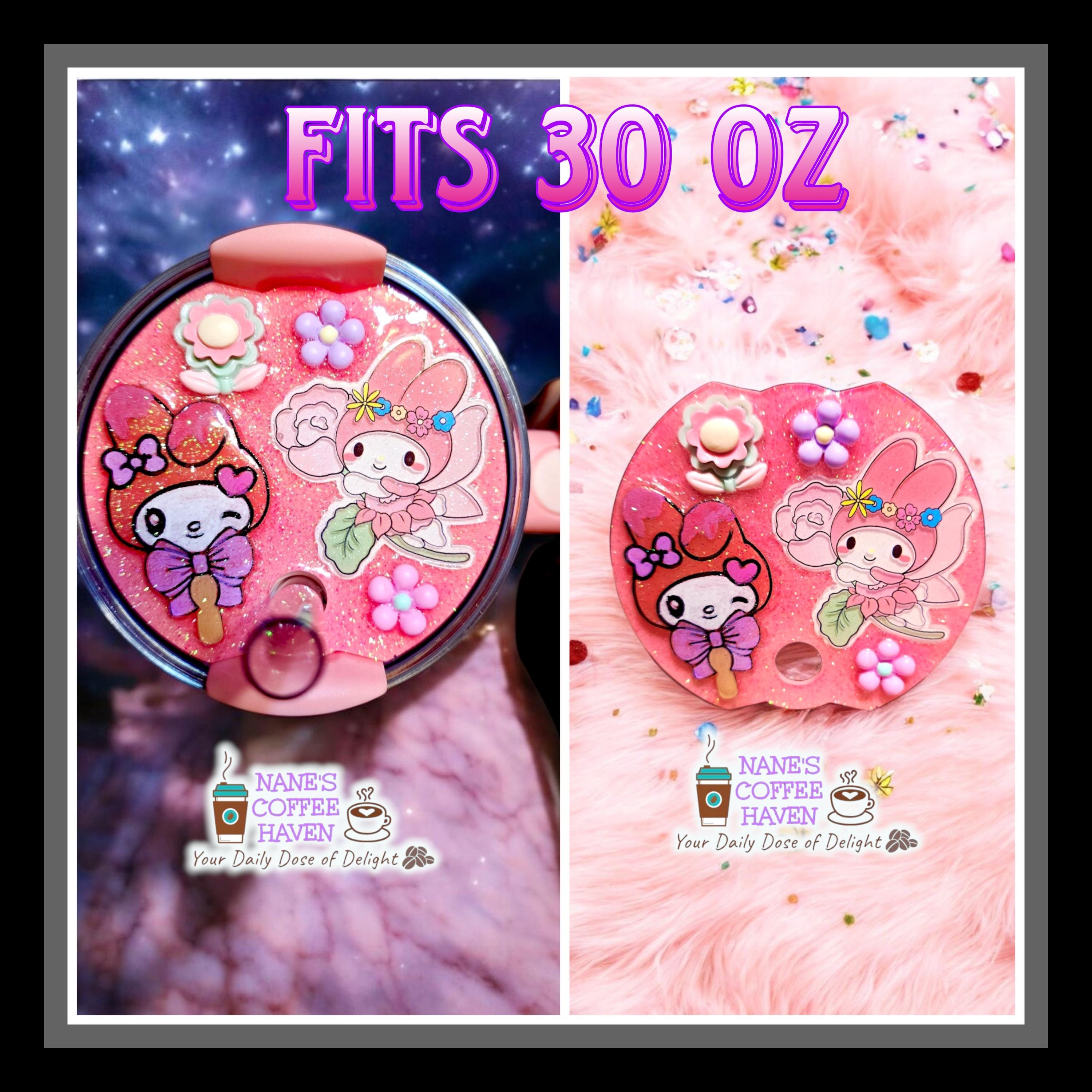 This handcrafted resin topper is designed to fit 30 oz & 40 oz Stanley cups, 30 oz Quencher lid tumblers, and features Hello Kitty and Friends Characters x Care Bears. Each piece is handmade with love using resin, glitter, resin charms, and vinyl stickers. I carefully handcrafted the characters and set them into the topper for a truly one-of-a-kind accessory.