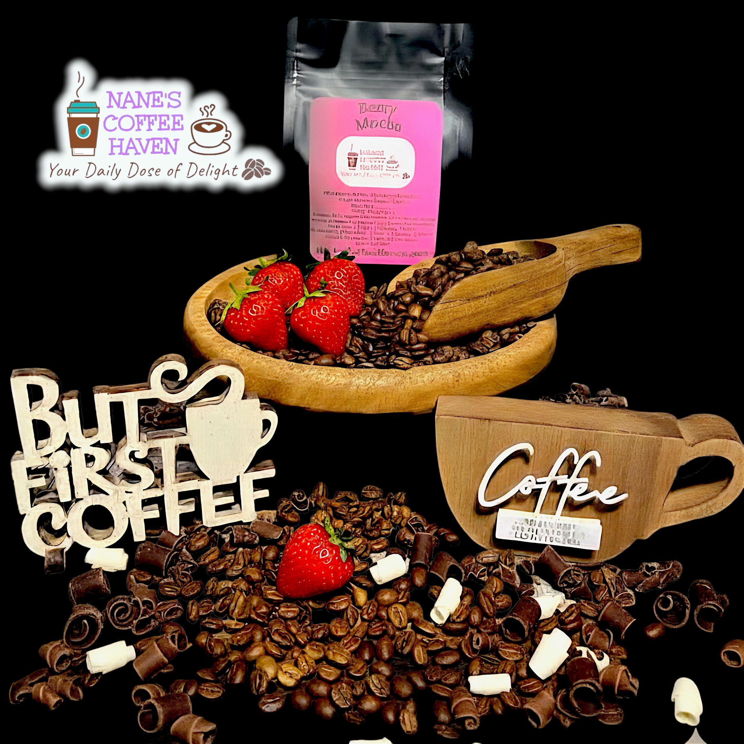 Berry Mocha Coffee – 10 oz Experience a luscious fusion of flavor with our Berry Mocha Coffee. Made from premium medium-roast Arabica beans grown in the high mountains of Chiapas, Mexico, this blend is infused with natural strawberry flavor and organic cocoa — all with NO SUGAR ADDED. Each sip reveals a silky mocha base lifted by bright, fruity berry notes, creating a cup that’s vibrant, smooth, and delightfully aromatic. Freshly prepared to order, each 10 oz bag is available in your choice of grind—fine, medium, or coarse—to ensure a cup that’s as fresh as it is unforgettable.